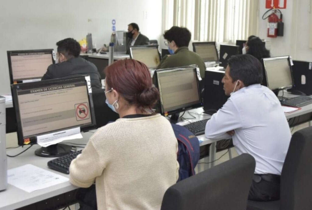 Las personas que se acerquen a obtener su licencia por primera vez o renovarla, deben presentar un examen teórico que consta de 20 preguntas aleatorias, en 20 minutos máximo y obtener mínimo una calificación de 16/20 para aprobar y obtener la licencia de conducir.