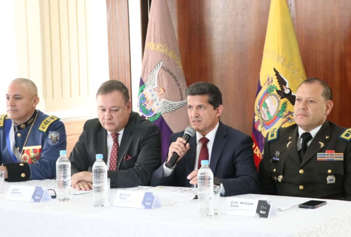 En una rueda de prensa en la Escuela Superior de Policía, en Pusuquí, al norte de Quito, Juan Zapata, ministro del Interior; Fausto Salinas, comandante de la Policía Nacional; y Bolívar Tello, director del Servicio Integrado de Seguridad Ecu 911, explicaron los ejes preventivos que manejarán las autoridades para los comicios electorales.