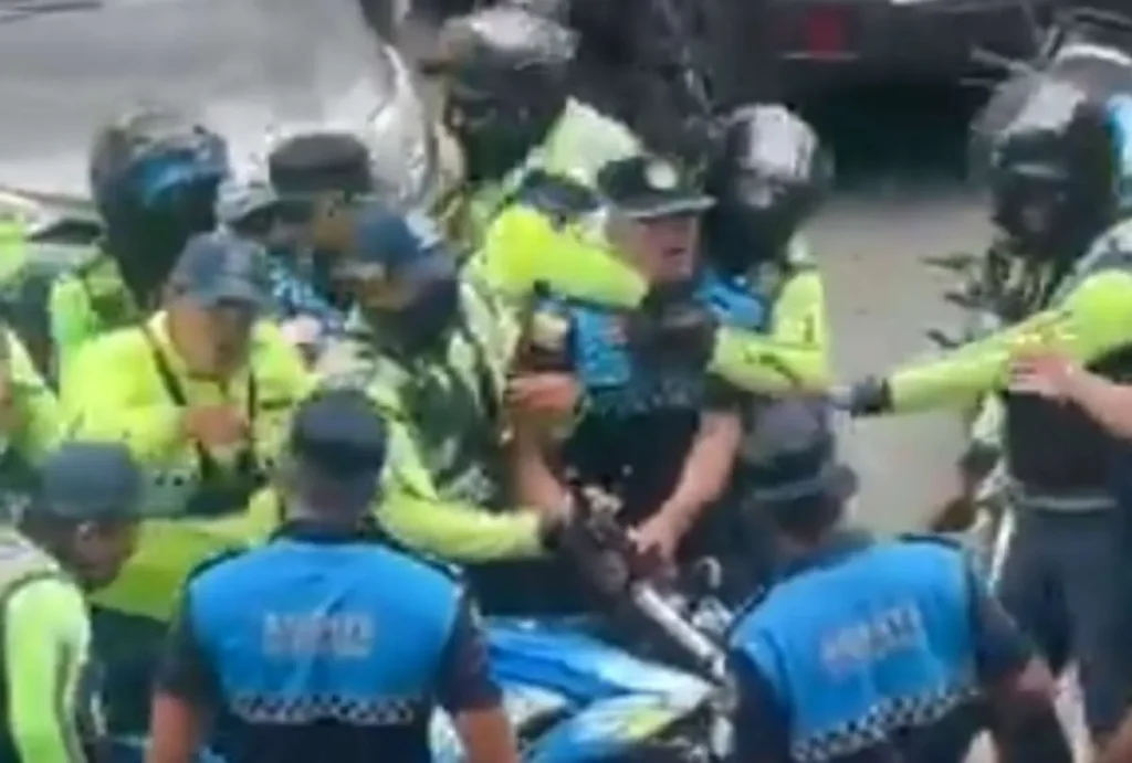En las imágenes difundidas en redes sociales se observa a un grupo de agentes de tránsito intentando mover las motocicletas de los agentes de Control Municipal. Hay forcejeos, empujones y hasta ahorcamientos.