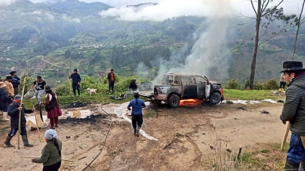 Defensores de Fierro Urco (Loja) denuncia que trabajadores de la empresa minera Guayacán Gold y Corneston quemaron dos camionetas, destruyeron otras dos camionetas y un camión, además de un presunto intento de asesinato a uno los propietarios de un vehículo.