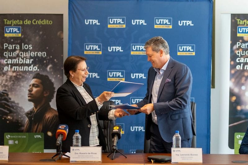 El convenio entre la UTPL y el Banco de Loja, tiene como finalidad brindar ayuda financiera a los estudiantes de grado de las modalidades presencial y a distancia, a través de la entrega de la tarjeta de crédito Visa Universidades.