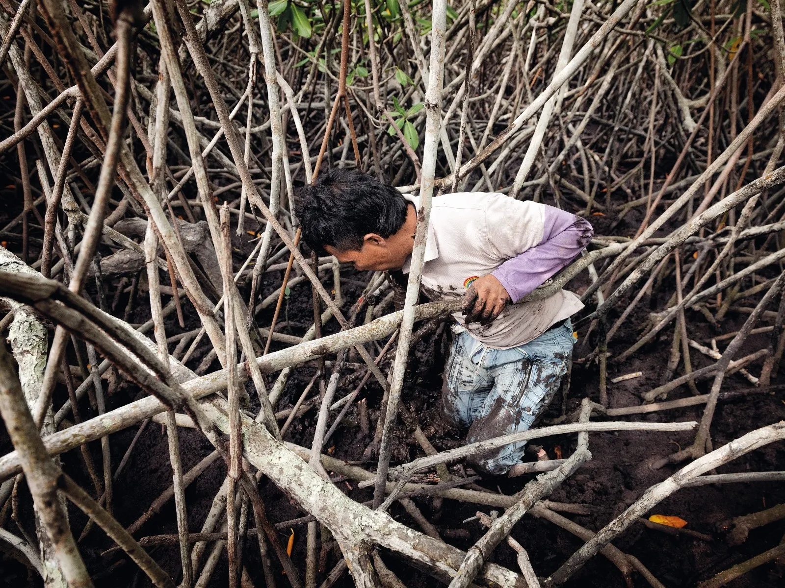 “En estos lugares hay una simbiosis con las conchas, cangrejos y mangle, donde dependen los unos de los otros. Los mangles abastecen de recursos a los cangrejos que se alimentan de las hojas; los cangrejos cavan galerías que oxigenan y mantienen la estructura de gases dentro de sedimento y las conchas se encargan de filtrar y procesar el agua que está cargada de microorganismos y minerales”, expresa Naranjo.