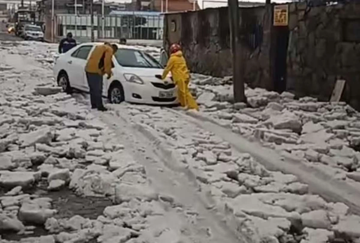 Uno de los sectores más afectados fue la ciudadela 19 de Noviembre, ubicada en el ingreso sur de Tulcán, donde calles, veredas y espacios públicos quedaron cubiertos por una espesa capa blanca de granizo. La acumulación taponó alcantarillas, cubrió tejados y obstruyó calzadas, lo que obligó a vecinos y bomberos a realizar labores de evacuación de agua en viviendas.