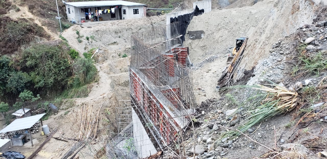 El cuarto punto, ubicado en el kilómetro 4 (+840), contempla la construcción de un muro de gaviones, cambio de geometría del talud, reemplazo de cunetas colapsadas y construcción de una alcantarilla. En el quinto y último punto, kilómetro 4 (+450), se trabaja en un muro paralelo a la vía con cinco estructuras cimentadas de manera escalonada, alturas entre 7 y 14 metros, además de la construcción de cunetas, cunetas de coronación, subdrenajes y reemplazo de la estructura del pavimento.