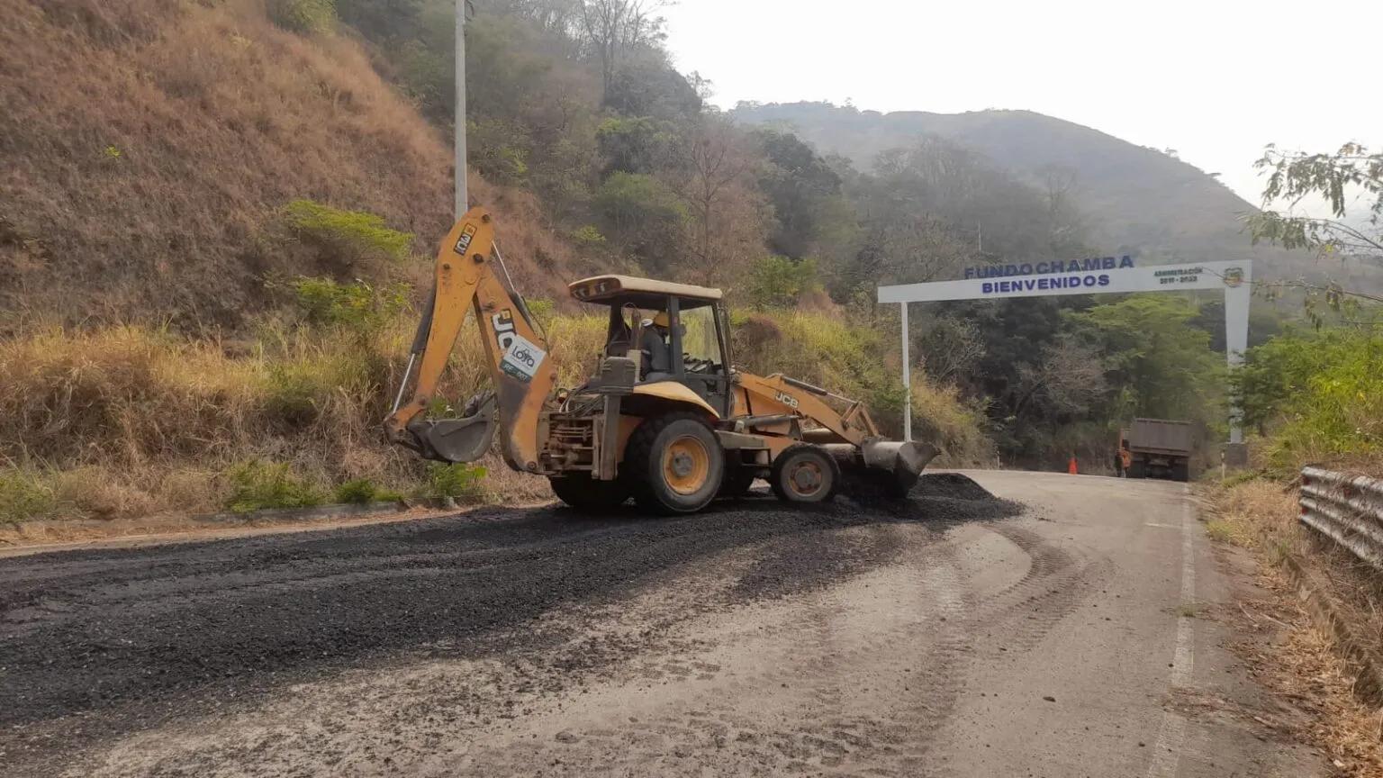 Avanzan trabajos de bacheo asfáltico en el tramo Ye de Fundochamba – Fundochamba, priorizando la conectividad y seguridad de la población local, especialmente agricultores, estudiantes y transportistas.