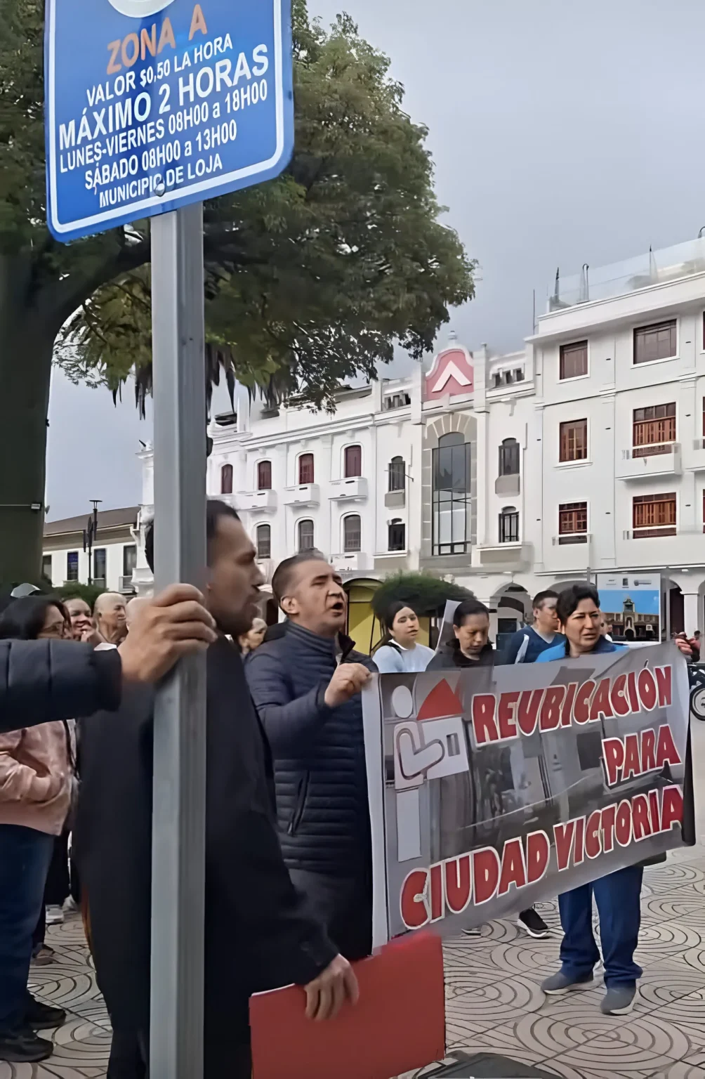 La mañana del lunes 24 de febrero, los vecinos del sector Ciudad Victoria llevaron a cabo un plantón pacífico frente al Municipio de Loja, denunciando la falta de atención por parte de la entidad municipal responsable del proyecto de vivienda en la zona.